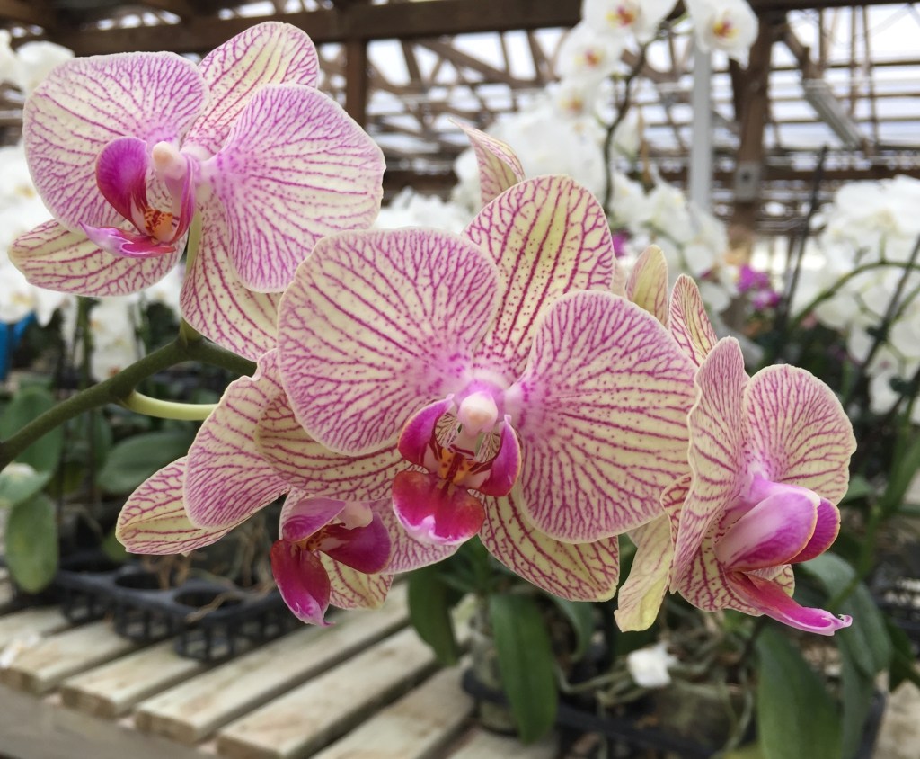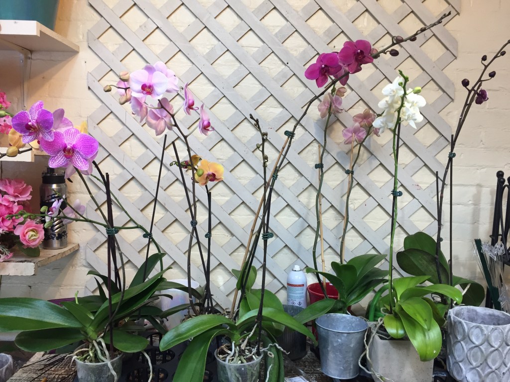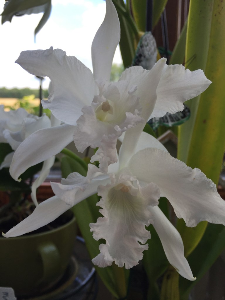 I learned a lot about the care of orchids from an older man, Richard, who owned an orchid greenhouse. That’s where we purchased our orchids for the store. He even formulated his own orchid food. Sadly, his health took a turn for the worse and the greenhouse closed this summer. I was able to purchase several orchids before the closure. They were not blooming at the time but I believe they are all white. Two are currently in bloom and they are white.