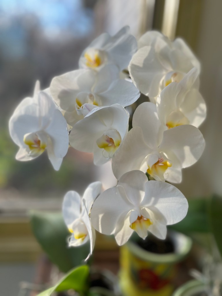 Orchids can be frustrating and they teach me what I need most…patience. Love is the same way. Orchids require warmth, watering, and a fair amount just letting it be. Neither will bloom exactly when you want them too. That’s a fact.