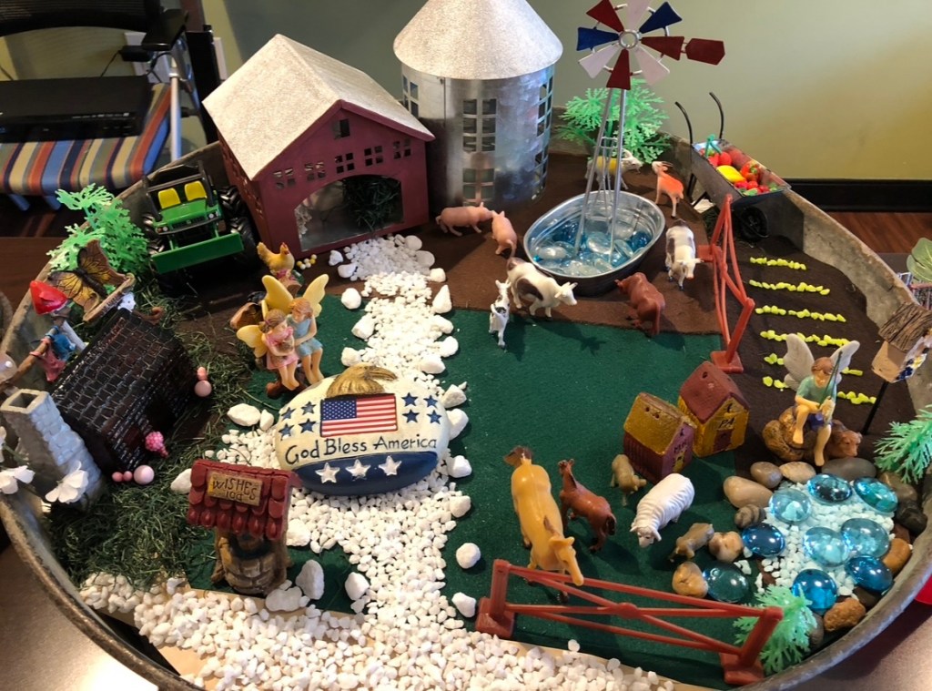 Putting this garden together reminded me of the time I worked in the activities department at a long term health care facility. We made gardens with the residents and had a contest. They had great fun and so did we.