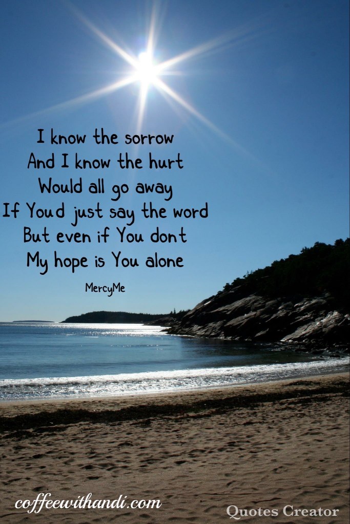 Even If by MercyMe is one of my most favorite Christian songs, if not the favorite. I’ve listened to it a million times (well maybe not that many) and I tear up (okay, cry) every single time. The emotion Bart Millard beautifully pours into each word reaches my very soul.