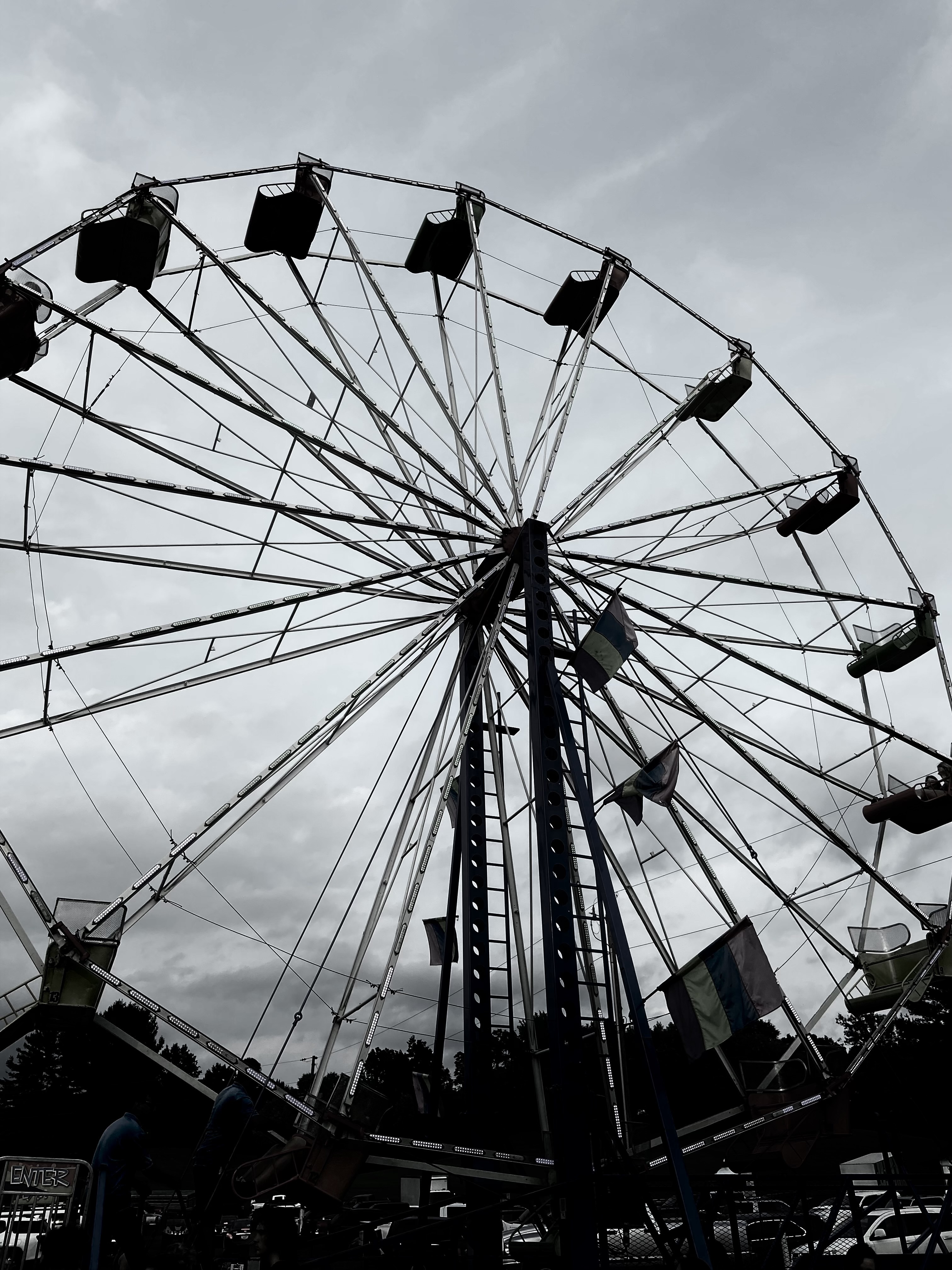 Photos all taken by me: Ferris wheel, county fair 2021; covered bridge near me; the sun; ship off the coast of Maine, 2017; chair, 2021; Lake Michigan, Pointe Betsie Lighthouse, 2009