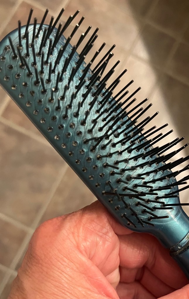 When I finished my makeup, I pulled my brush from my travel bag and started to run it through my hair. My daughter caught a glimpse of my brush and grabbed it.