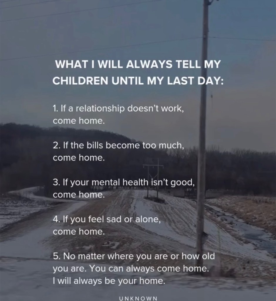 She is right about this. Come home seems to be my answer for most everything. (Especially for her since she lives 1,000 miles away from me.) I just love my kids so much. Sometimes I feel so helpless when my desire is to be helpful. So just come home…