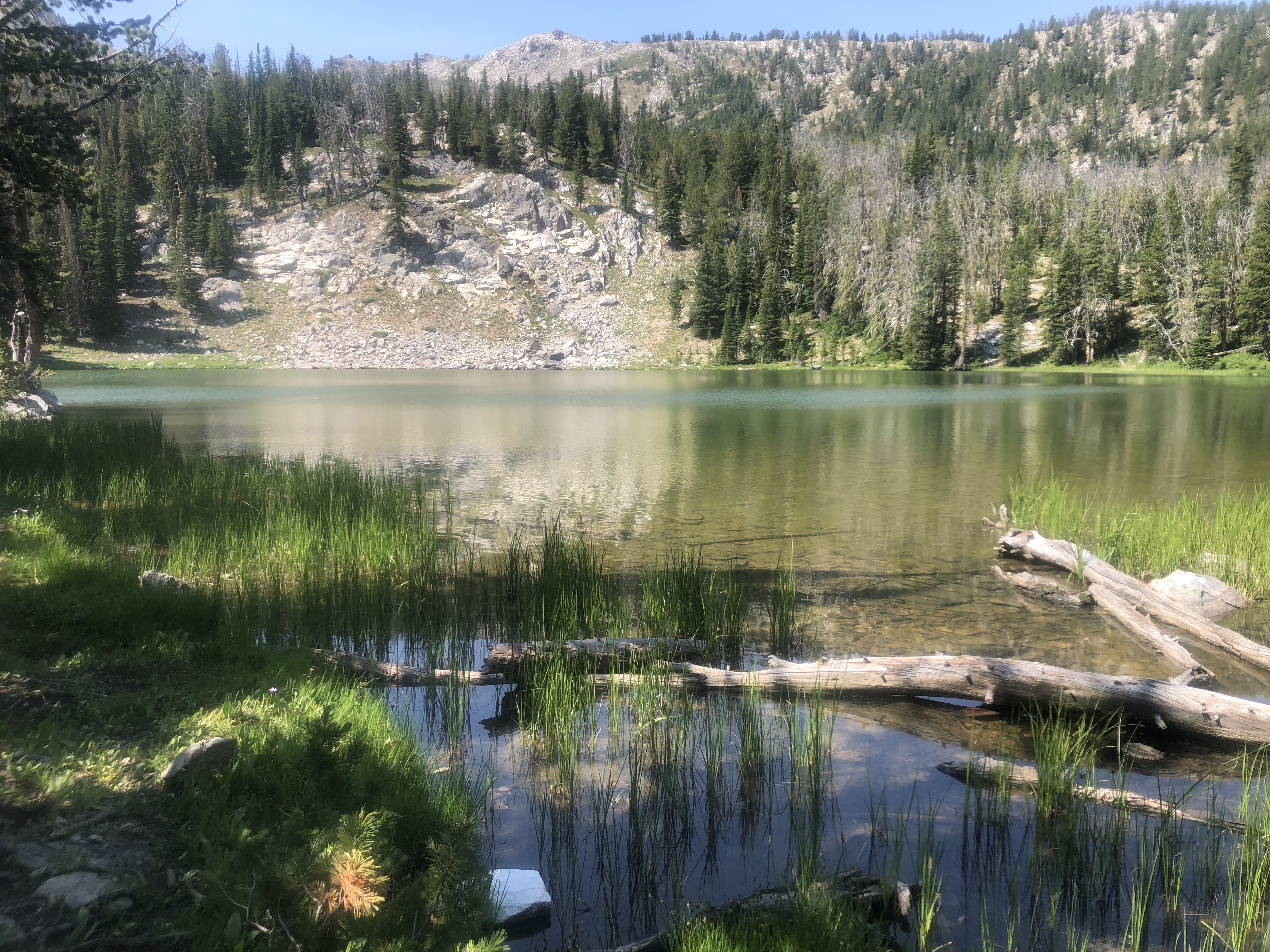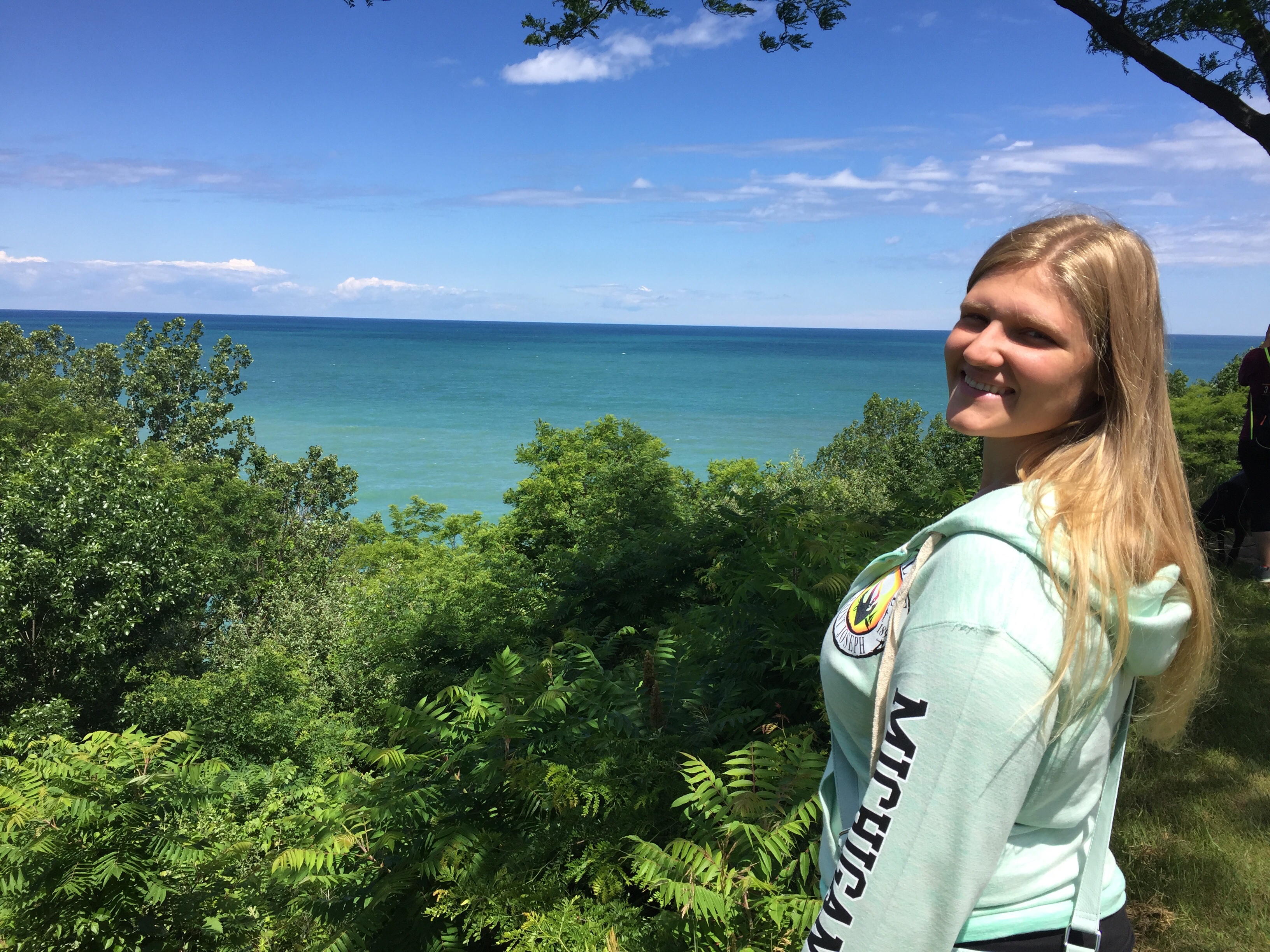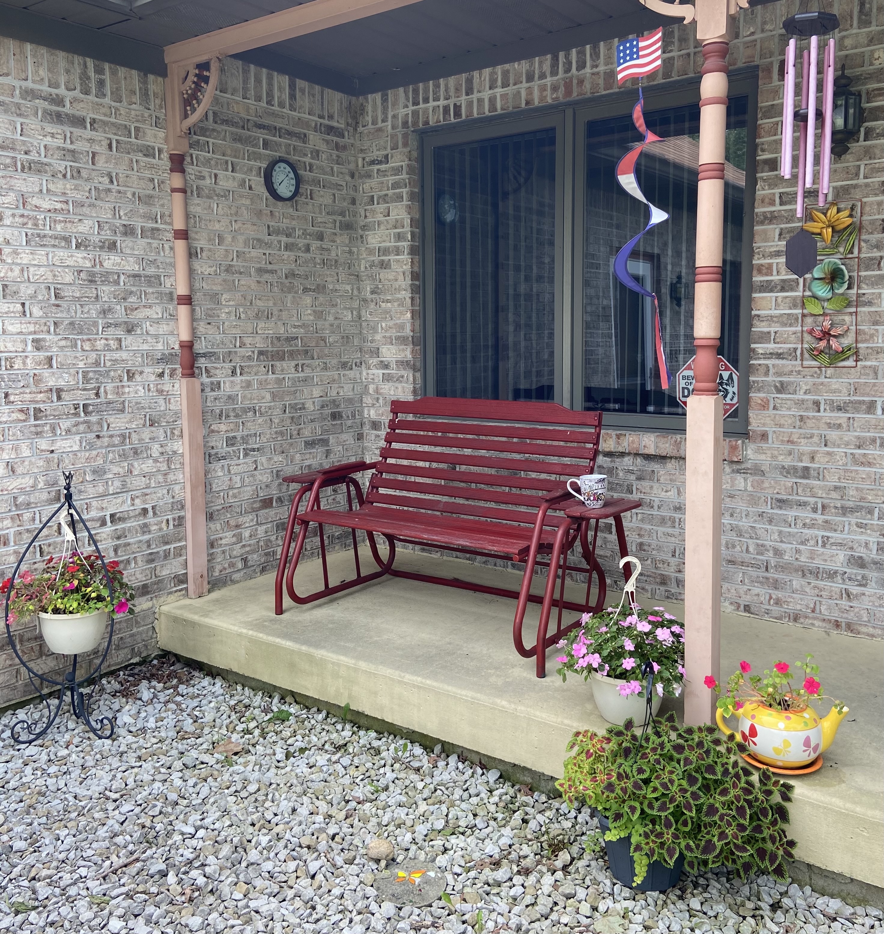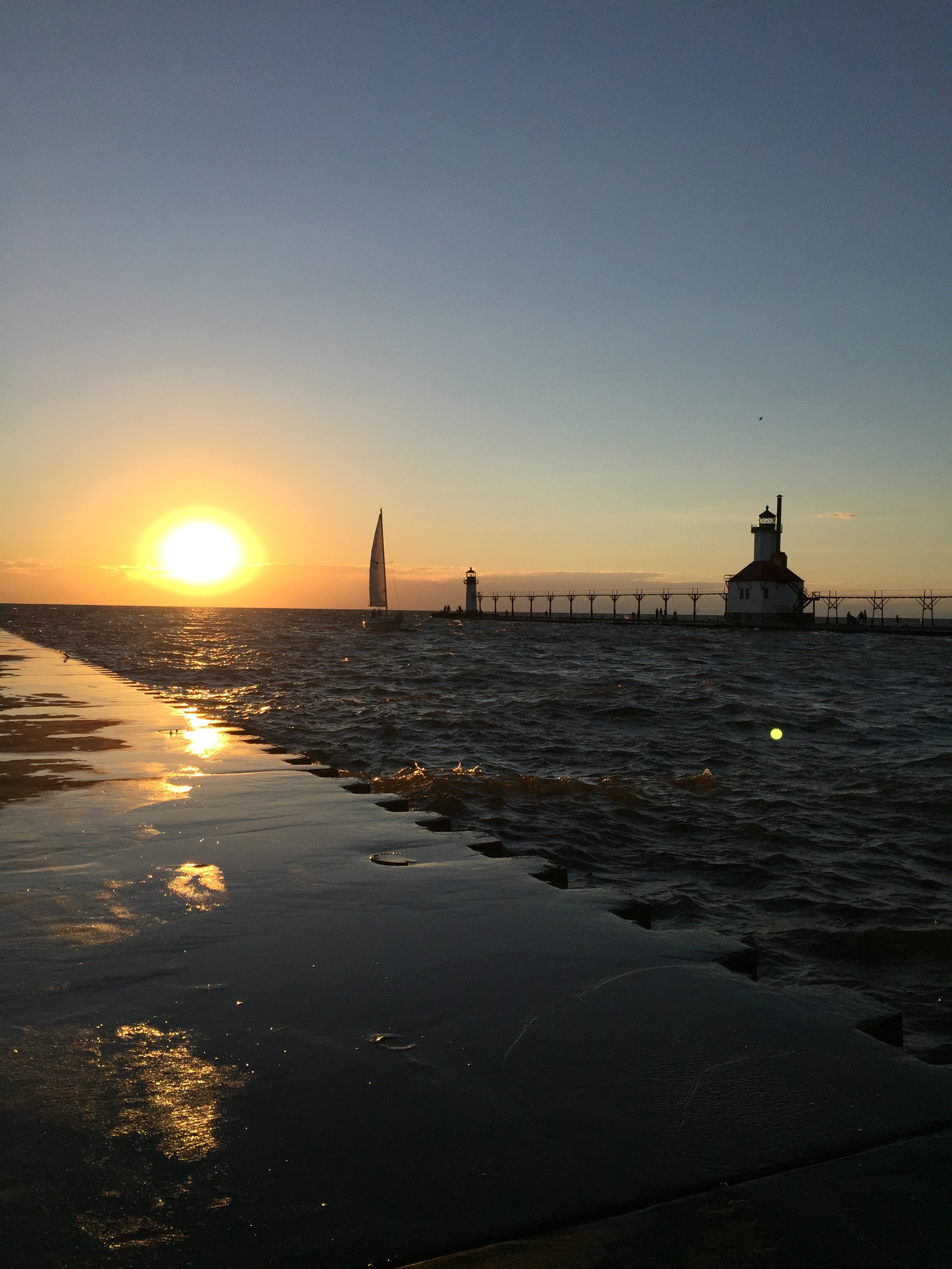 Photos: Sand Beach, ME; Big Long Lake, IN (see the heart?); in my once-upon-a-time woods; me, on my porch swing 2019