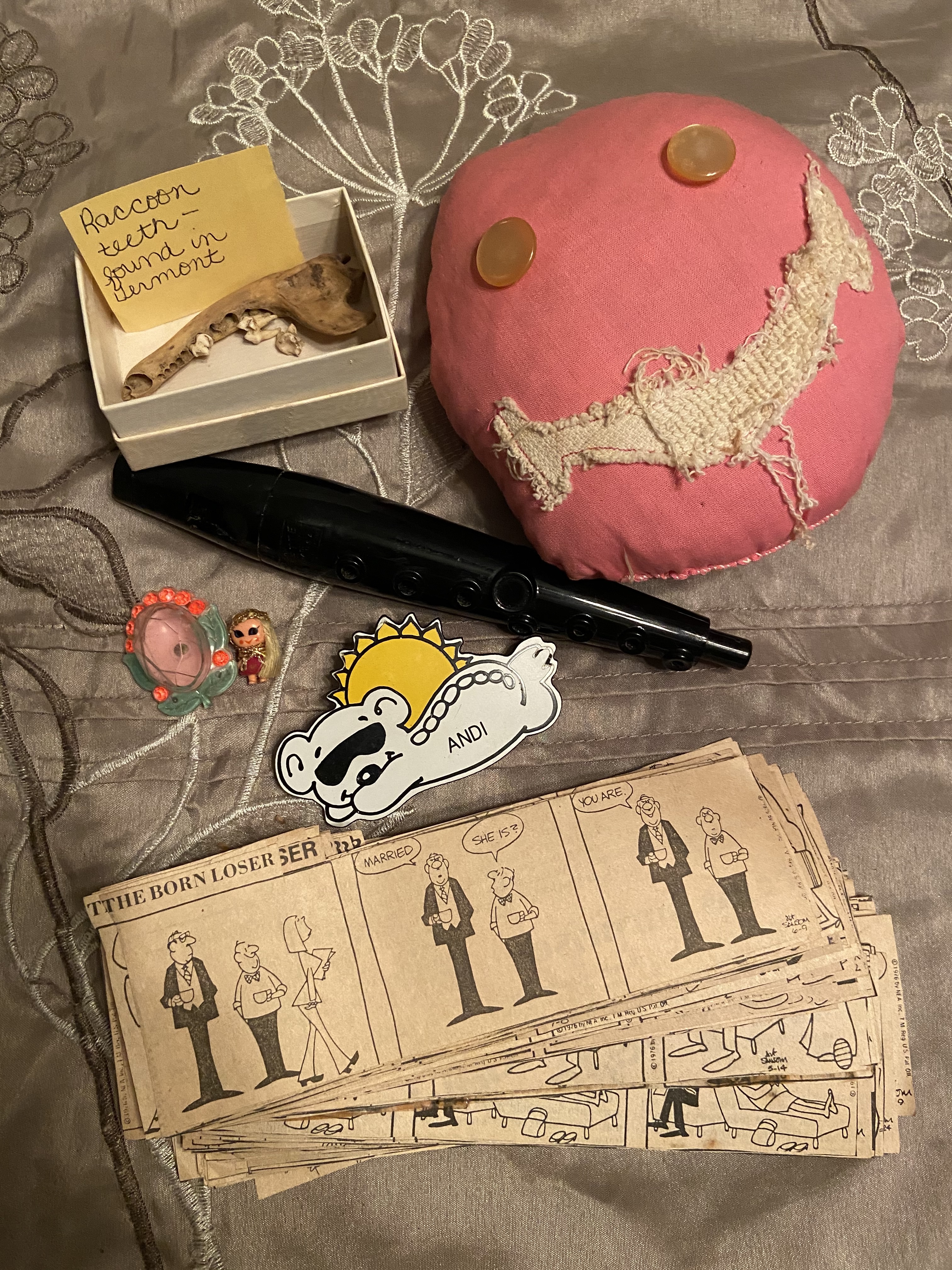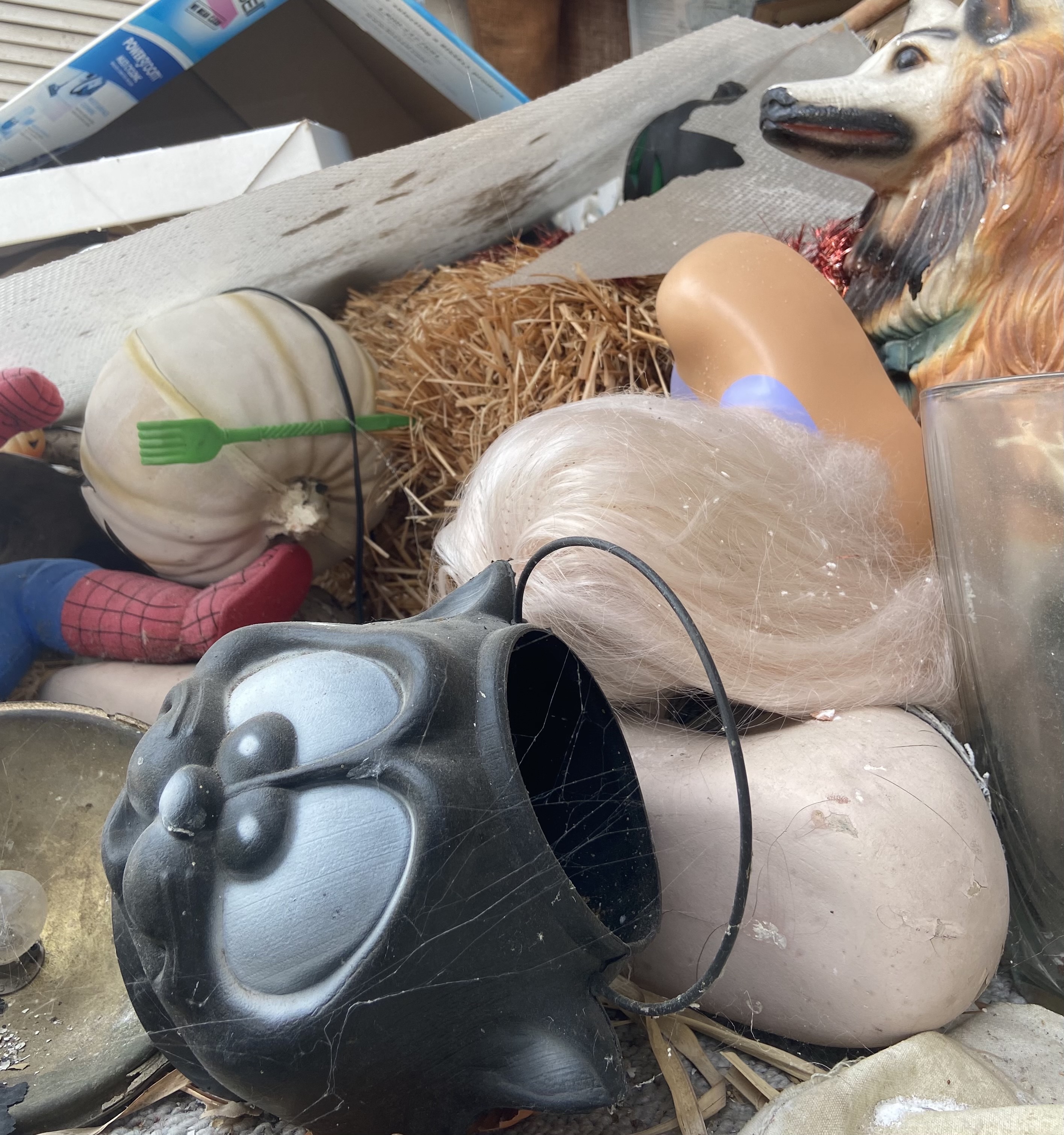 Sometimes I lose something but it’s right there in front of me, in my hand, or on my head. Or under a gorilla mask on a table. (My keys)