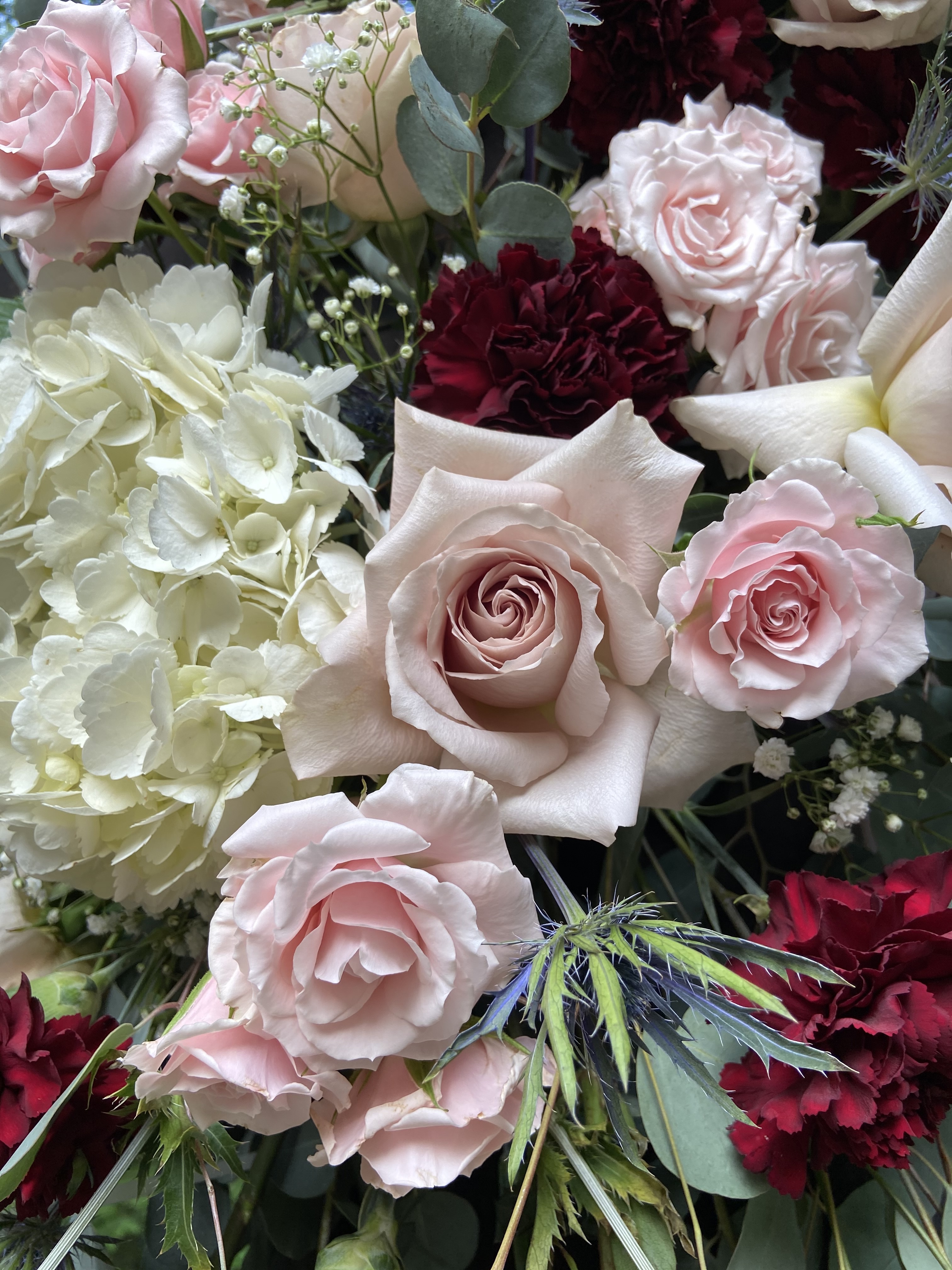 To add to our list are sunny sunflowers, alstroemeria, lilies, and roses in an array of color and each with its own meaning.