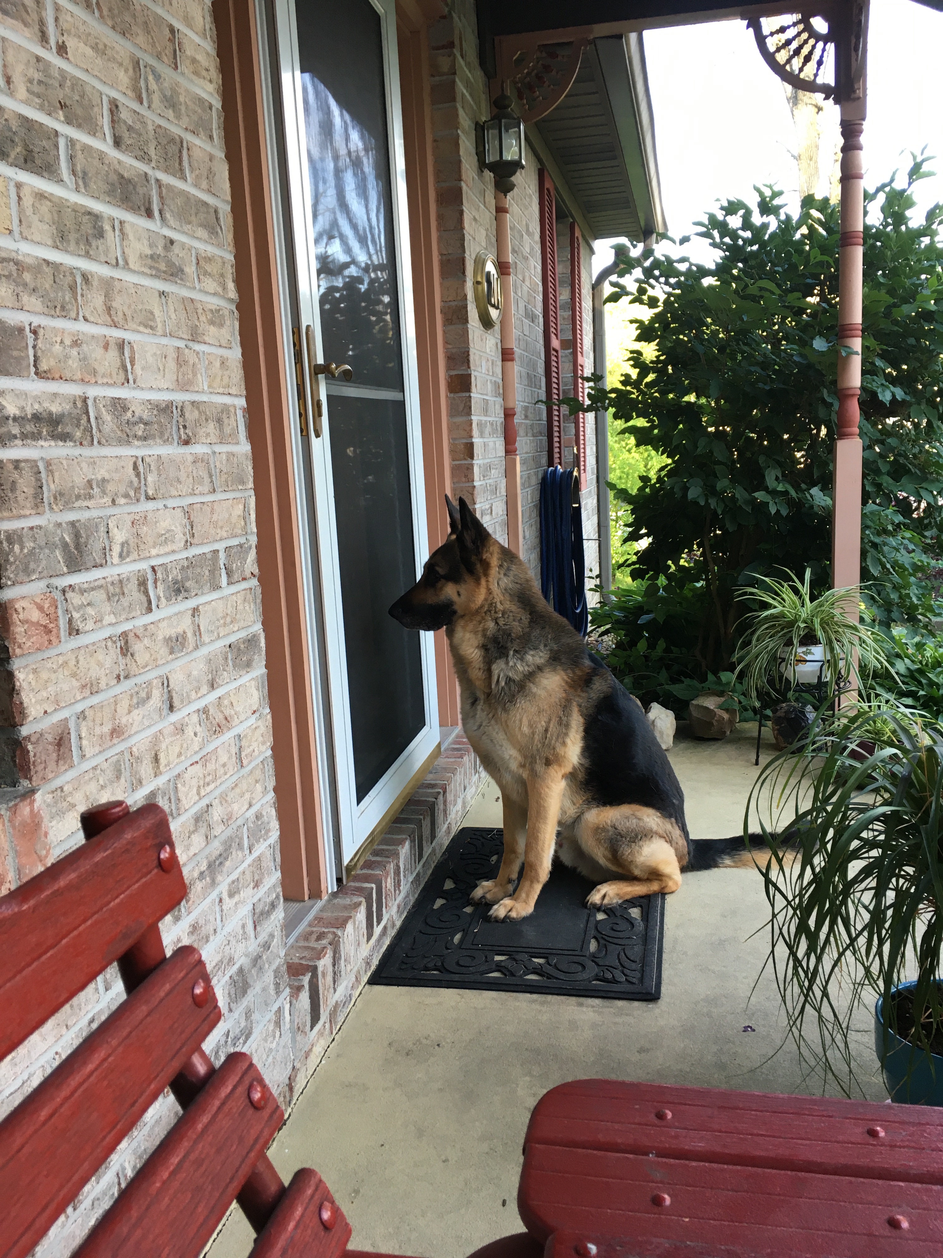 My girl and I. She’s a one person dog and I love that. Herc was all over the place trying to protect us all. Not that Nyx wouldn’t protect us, she would. I see that in her. But she just hangs out with me. She follows me everywhere in the house. If I make a move, she follows. When I am at work, she pretty much stays in one place until I get home. My daughter says she is a completely different dog when I am gone. She can’t even touch her until I return. Then Nyx will allow it. Kinda breaks my heart since I’m gone for ten hours a day.