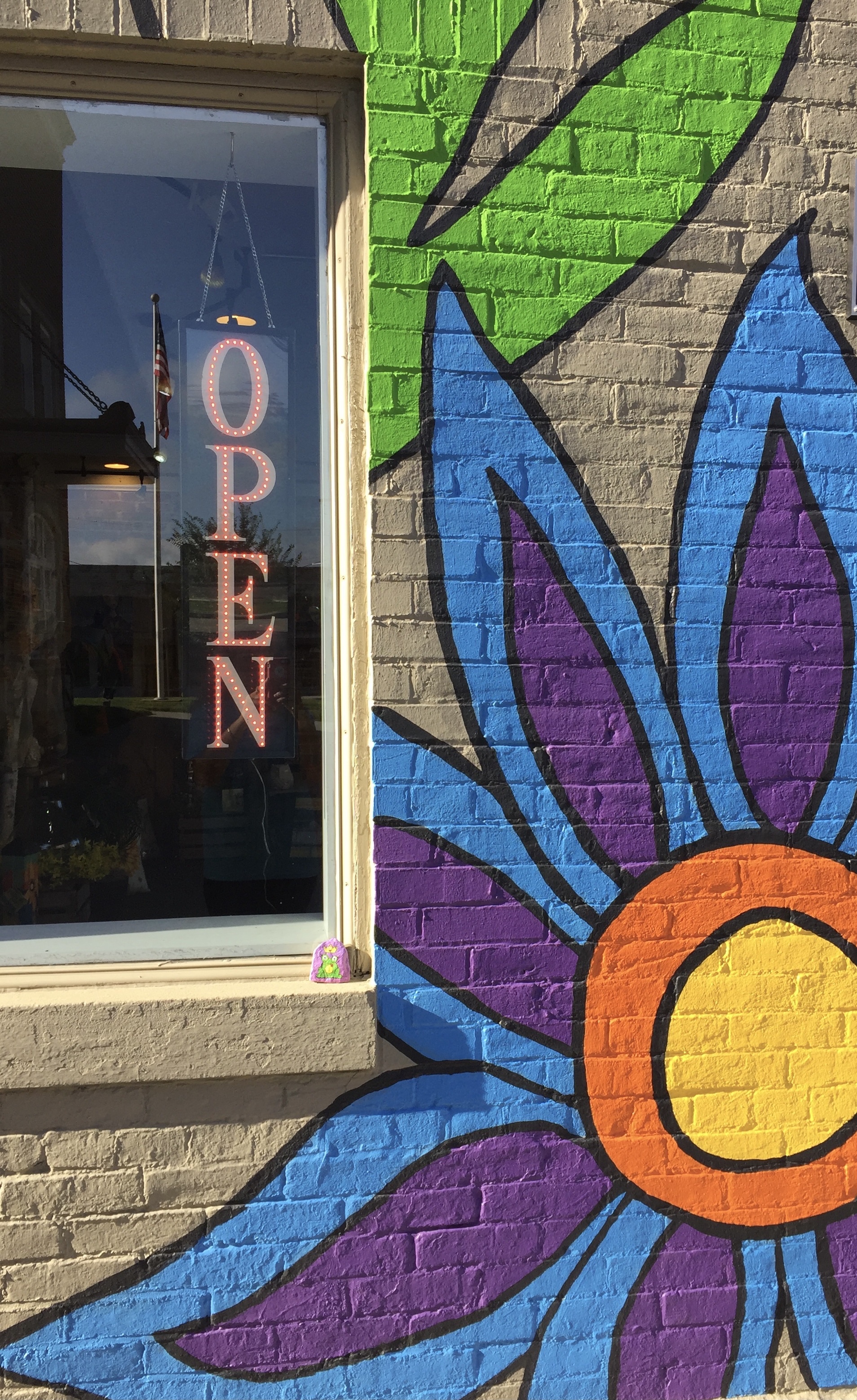 After I pass the Heritage Wall, but before I get to the post office, I pause in front of the building where I worked for a florist for seven years. I see the outline on the concrete ledge that supported a long flower box that we watered everyday throughout the summer and decorated for winter. I peek in the windows and sigh a little as I remember. I think of the magic that once was. The flowers, the gifts, the special holiday events, and the customers. In the main room still stands the cooler from the 1940’s. It is big and beautiful. So many good memories! The shop had served the community for 110 years before it closed in February 2019. That was a sad day for me. For a lot of people. It’s hard not to tear up while I stand here reminiscing. One day I will write a post about that magical place.